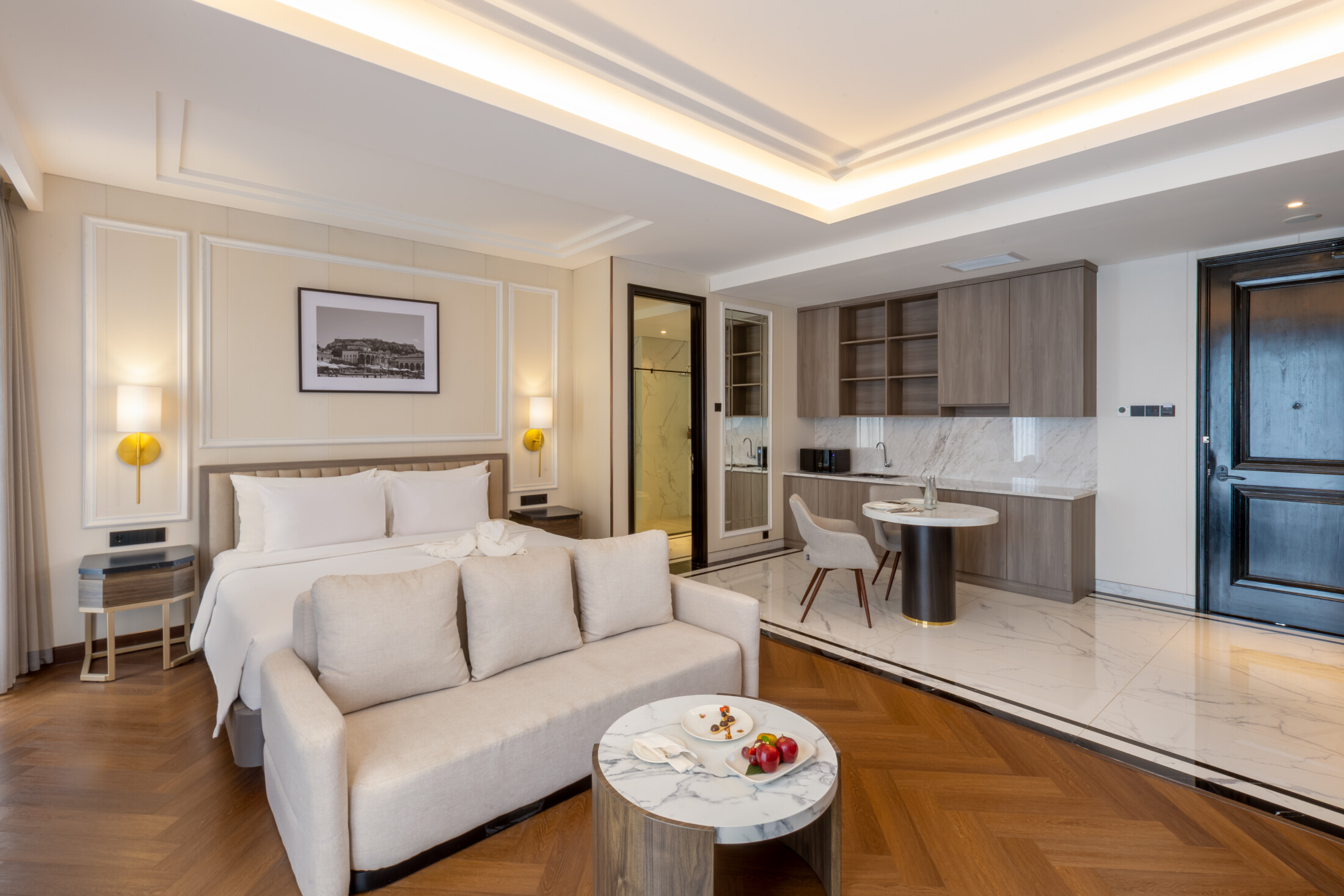 Experience the perfect blend of elegance and comfort in our Junior Suite with Balcony. Designed for those who seek extra space and luxury, this suite features a king-sized bed (200 cm x 200 cm) for a restful and rejuvenating sleep. With an expansive 69 square meters, the suite offers ample room to relax, entertain, or work. Enjoy the added luxury of a private balcony, perfect for unwinding while taking in the views.